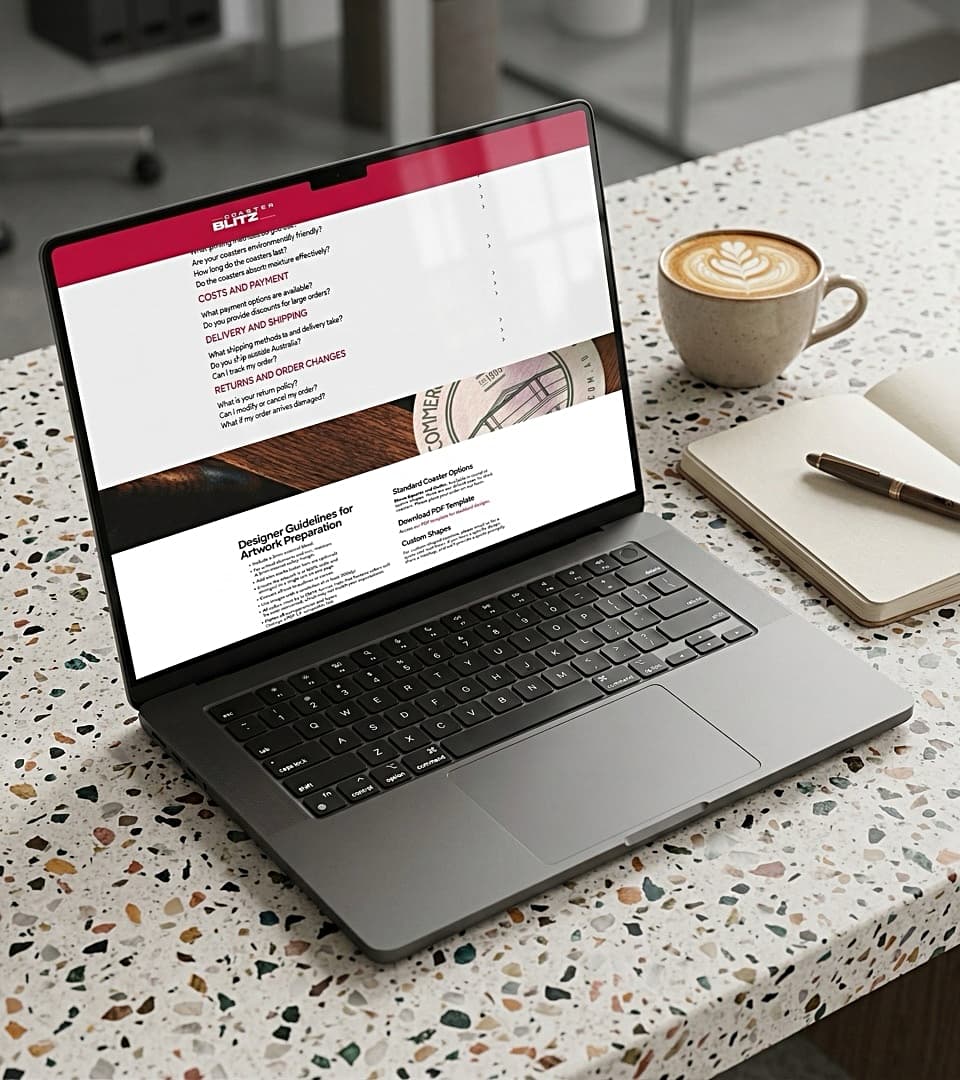 The result was Coaster Blitz — now one of Brisbane's leading suppliers of custom printed coasters to the hospitality industry.
